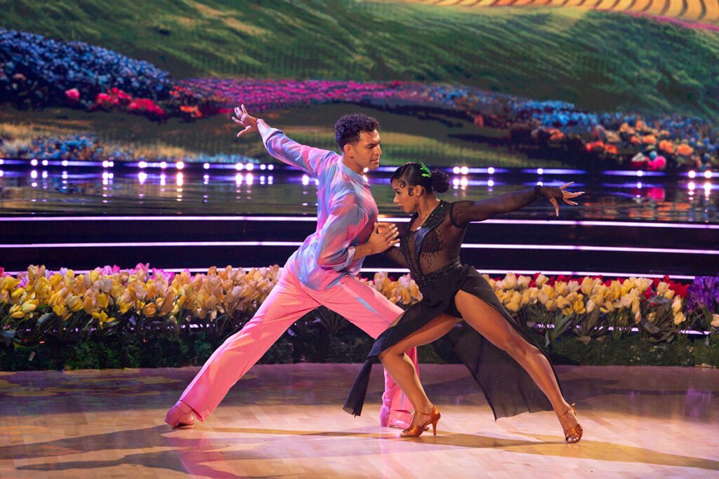 Jordan and Ezra opened with a paso doble to “Breakin’ Dishes” by Rihanna, scoring 29/30. Next came the instant dance — a tango to “I Like It” where Chiles and Sosa earned a perfect score (30/30), with judges praising her hold, control, and chemistry with her partner.